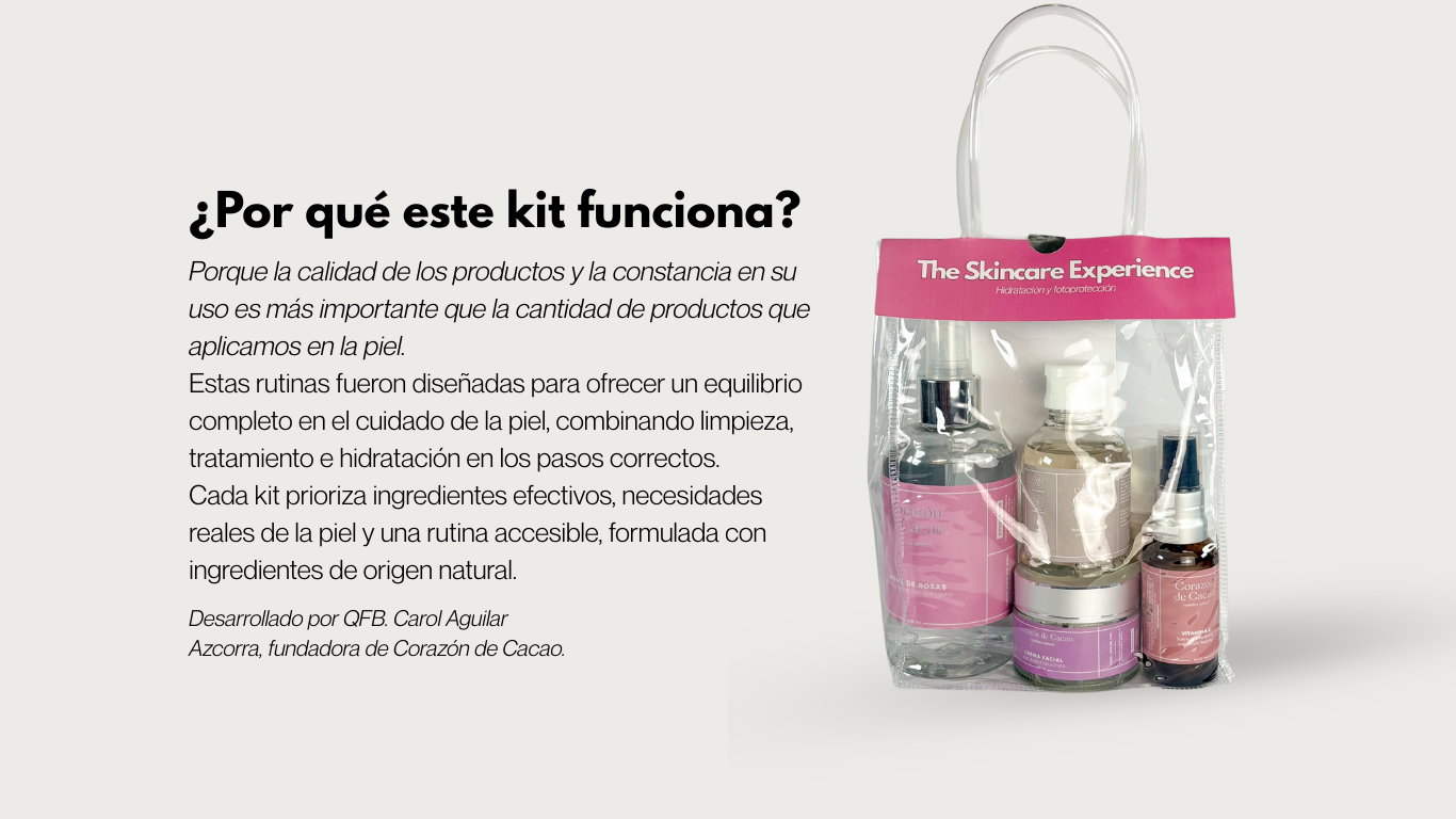 Esta rutina fue diseñada para hidratar profundamente la piel, calmarla y protegerla del daño solar, ayudando a mantenerla equilibrada, luminosa y confortable a lo largo del día.